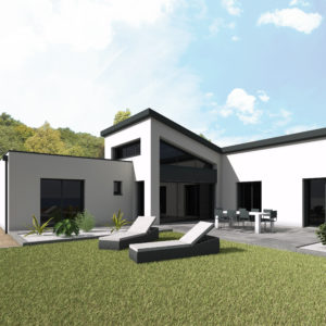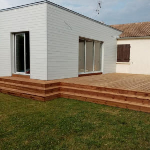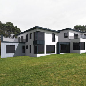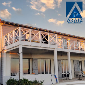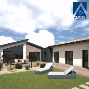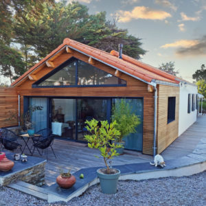 Objectif : Renforcer l’aspect bord de mer de la maison avec de nombreux éléments de décor (corniche, bardage, garde-corps, petit-bois,…) sur une maison Phénix des années 1970.