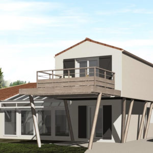 Surélévation d’une maison avec création d’un grand balcon face à la mer sur la corniche de Préfailles.